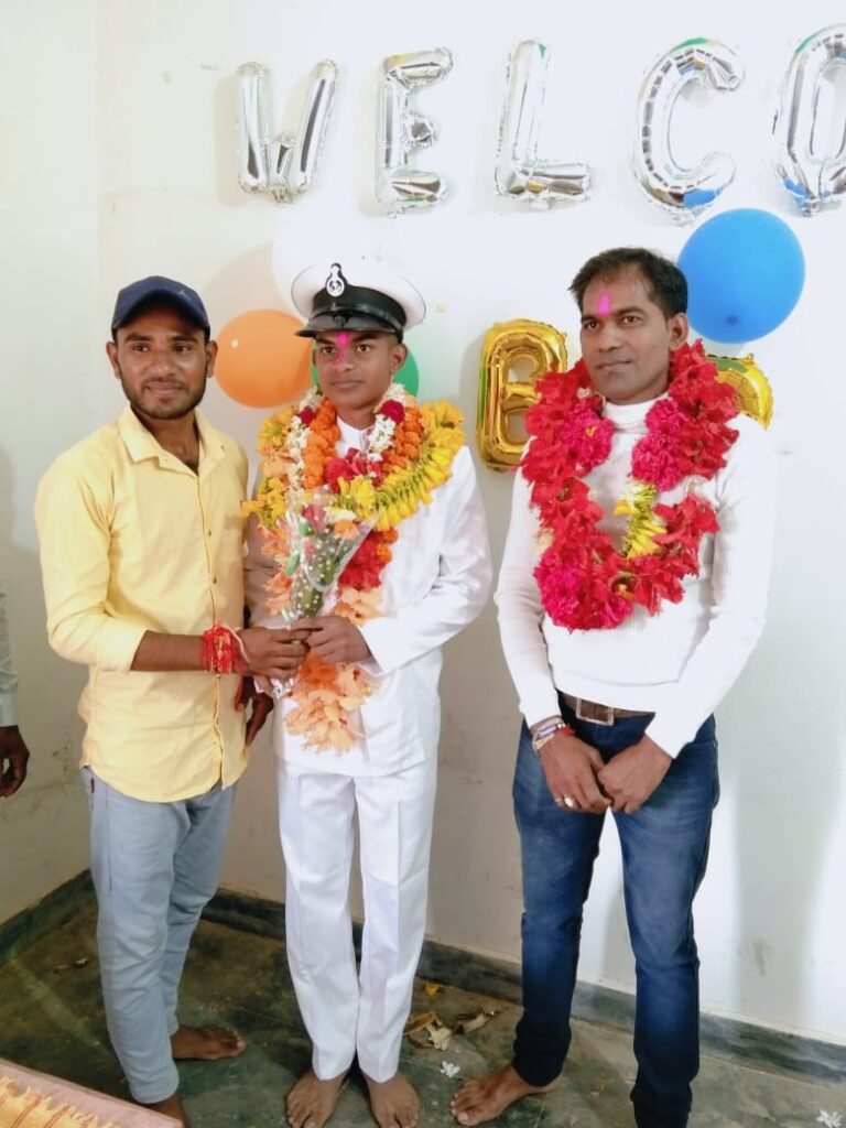 मुंगेली – मुंगेली जिला से भारतीय नौसेना में भर्ती होने वाले संदीप साहू पिता पुनाराम साहू जो भारती नौसेना में 6 माह प्रशिक्षण प्राप्त कर गृह ग्राम चोरहा बुंदेली आने पर युवा प्रकोष्ठ तहसील साहू संघ मुंगेली मुलाकात कर पुष्पहार से स्वागत कर सहपरिवार का मुंह मीठा कर बधाई दी।