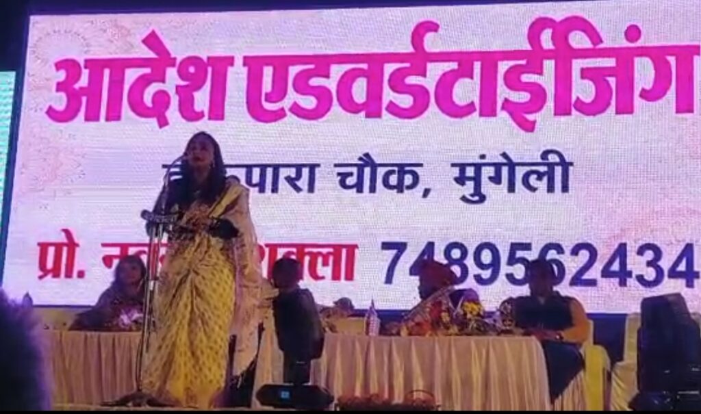 मुंगेली – अखिल भारतीय कवि सम्मेलन श्री राम कवि सम्मेलन के द्वारा नगर के कृषि उपज मंडी परिसर में कवियित्री स्व. श्रीमती दिव्या दुबे की स्मृति में अखिल भारतीय कवि सम्मेलन का आयोजन किया गया, जिसमें मुंगेली जिले के वीर रस के कवि देवेंद्र परिहार,छत्तीसगढ़ के जाने माने हास्य कवि सुरेंद्र दुबे सहित डॉ. भुवन मोहनी, सरदार मंजीत सिंह, हेमंत पांडेयदु, सोनल जैन सहित कुलदीप रंगीला अपनी प्रस्तुति दी ।