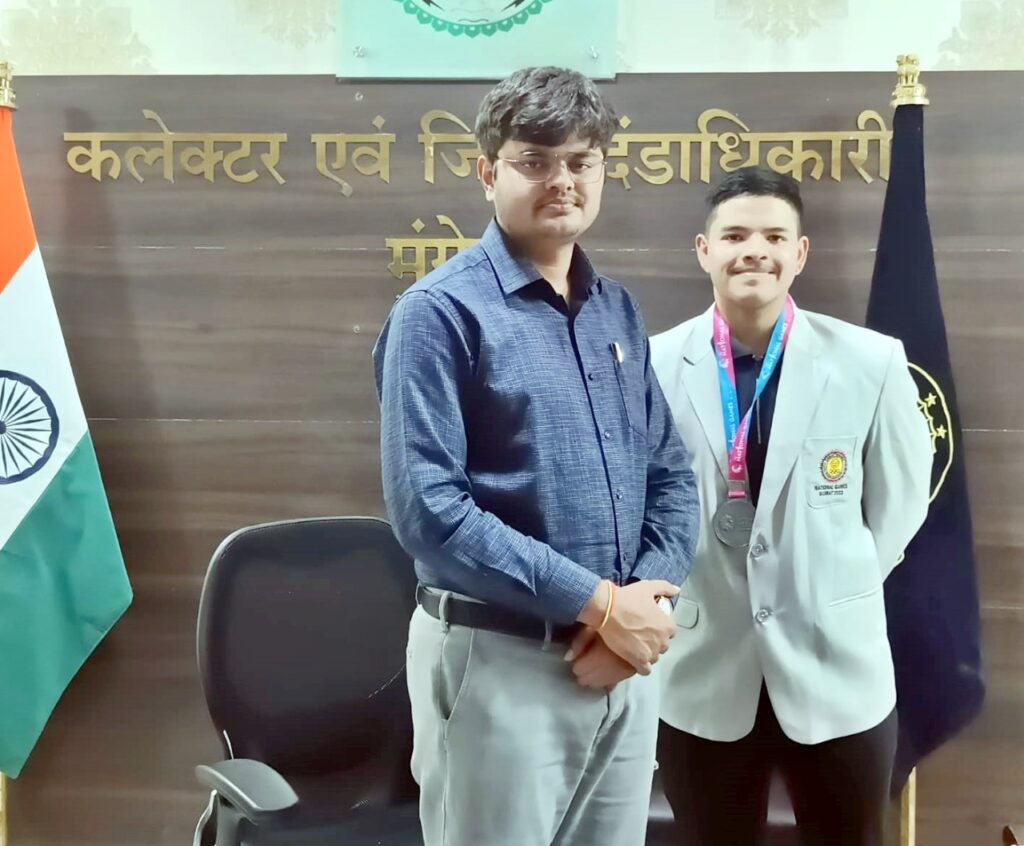 मुंगेली – कलेक्टर से आज जिला कलेक्टोरेट में मुंगेली के इंटरनेशनल सॉफ्ट बाल खिलाड़ी आर्यन ताम्रकार ने सौजन्य मुलाकात की। श्री ताम्रकार ने बताया कि वे गुजरात में आयोजित 36वां नेशनल गेम्स सॉफ्ट बाल खेल में प्रदेश की ओर खेलते हुए रजत पदक प्राप्त किया है और टूर्नामेंट में एक ही मैच में दो होम रन बनाने के लिए उन्हें बेस्ट खिलाड़ी आॅफ द टूर्नामेंट की खिताब से नवाजा गया है। कलेक्टर श्री देव ने श्री ताम्रकार की इस उपलब्धि पर खुशी जाहिर की और उन्हें अपनी बधाई दी। उन्होंने कहा कि श्री ताम्रकार का मुंगेली जिले से एक अंतरराष्ट्रीय स्तर की खिलाड़ी बनकर उभरना और अंतरराष्ट्रीय स्तर के खेल में उत्कृष्ट प्रदर्शन करते हुए स्थान प्राप्त करना जिले के लिए गौरव की बात है। उन्होंने श्री ताम्रकार को अन्य खिलाड़ियों के लिए प्रेरणास्त्रोत बताया साथ ही उनके उज्जवल भविष्य के लिए शुभकामनाएं दी। कलेक्टर ने कहा कि जिला प्रशासन द्वारा खेल व खिलाड़ियों को आगे बढ़ाने के लिए हर संभव प्रयास किया जा रहा है। उन्होंने जिले के खिलाड़ियों को राष्ट्रीय और अंतरराष्ट्रीय स्तर पर उत्कृष्ट प्रदर्शन हेतु हर आवश्यक मदद की बात कही। तत्पश्चात श्री ताम्रकार ने बताया कि वे इसके पूर्व भी भारतीय टीम की ओर खेलते हुए अण्डर 17 सॉफ्टबॉल मेंस एशिया कप 2019, मलेशिया एवं अंडर 23 सॉफ्टबॉल मेंस एशिया कप, कोची, जापान में खेलते हुए देश के लिए पदक प्राप्त कर चुके हैं।