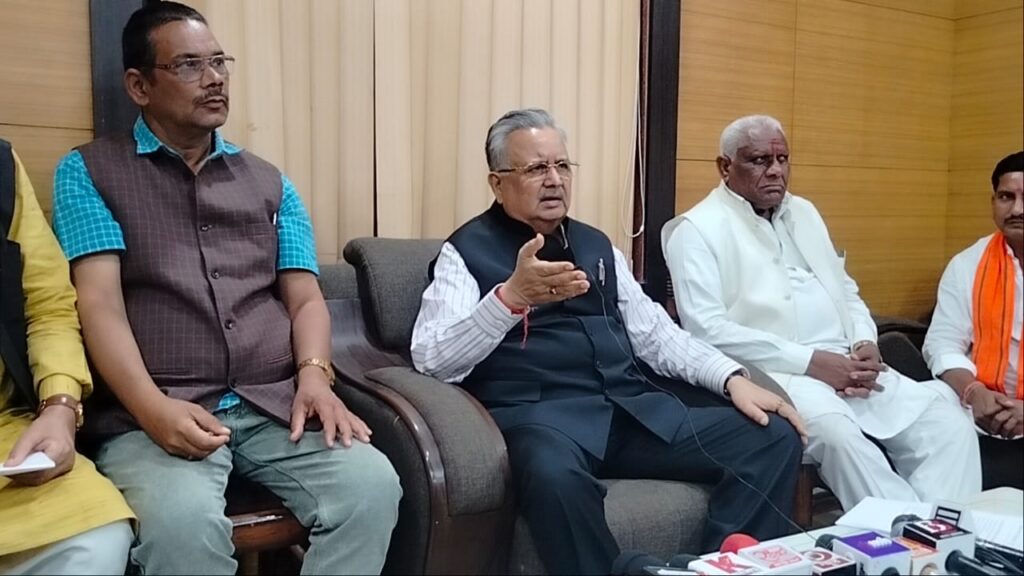 भाजपा राज्य में किस चेहरे पर चुनाव लड़ेगी पूछे जाने पर डॉ रमन सिंह ने कहा कि यह सही समय में पार्टी द्वारा तय कर लिया जाएगा। गुटबाजी के प्रश्न पर कहा कि भाजपा में कोई गुटबाजी नहीं है सब एकजुट हैं। भूपेश सरकार नरवा गरवा के नाम पर लोगों को बेवकूफ बना रही है। प्रदेश में सड़कों का बुरा हाल है विकास कार्य ठप पड़े है। भाजपा इस बार और बेहतर घोषणा पत्र बनायेगी। श्री सिंह ने कहा उपचुनाव में भले ही कांग्रेस की धनबल के कारण जीत हुई है परंतु प्रदेश की जनता अब कांग्रेस के वादाखिलाफी को समझ चुकी है। विकास रुक जाने से देश की रैंकिंग में छत्तीसगढ़ राज्य का बुरा हाल है 17 -18 वे स्थान पर पहुँच गया है। प्रदेश का कानून व्यवस्था,अर्थव्यवस्था सहित हर मामले में छत्तीसगढ़ का बुरा हाल है। पूर्व मुख्यमंत्री ने यह भी कह दिया कि पूर्व में जो राजस्व कार्य 5-10 हजार में होते थे लोग स्वेच्छा से देते थे अब उन्हें मजबूर हो कर लाखों खर्च करना पड़ता है। डॉ रमन सिंह ने प्रेस वार्ता के दौरान पुन्नूलाल मोहले,पूर्व सांसद लखनलाल साहू,जिला भाजपा अध्यक्ष शैलेष पाठक उपस्थित थे।