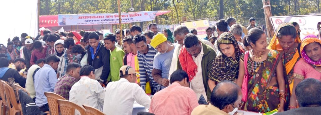 मुंगेली – मुख्यमंत्री भूपेश बघेल के मंशानुरूप एवं कलेक्टर राहुल देव के मागदर्शन में जिला प्रशासन द्वारा अचानकमार क्षेत्र के सुदूर वनांचल के ग्रामीणों की समस्याओं के निराकरण करने और उन्हें शासन की विभिन्न योजनाओं का लाभ दिलाने के उद्देश्य से आज शिवतराई में एकदिवसीय ‘‘जन मितान शिविर’’ का आयोजन किया गया। इस दौरान ग्रामीणों में भारी उत्साह देखने को मिला और बड़ी संख्या में अचानकमार क्षेत्र के ग्रामीणों ने शिविर में पहुंचकर शासन की विभिन्न जनकल्याणकारी योजनाओं का लाभ उठाया। शिविर में कुल 1607 आवेदन प्राप्त हुए, जिसमें से 989 आवेदनों का मौके पर ही नियमानुसार त्वरित निराकरण कर संबंधितों को राहत पहुंचाई गई।