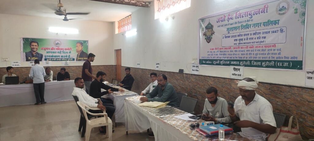 पैगम्बर मोहम्मद साहब के 1500 साल विलादत पर जश्न ईदमिलादुन्नबी से पूर्व मुस्लिम जमातखाना में सुशासन शिविर का आयोजन किया गया…राज्य सरकार की विभिन्न योजनाओं और अन्य दस्तावेज के सरलीकरण करने के लिए कई विभाग के स्टाल लगाए गए थे,जिसमे जन्म- मृत्यु,विवाह पंजीयन, पेंशन,पीएम आवास,राशन कार्ड,आय-जाति,निवास,रोजगार पंजीयन,आधार,पेन कार्ड सहित विभिन्न आवेदन लिए गए जिसमे अधिक आवेदन का निराकरण किया गया बाकी शेष आवेदन की कमी को को पूर्ण करके आवेदन का निराकरण किया जाएगा,मुस्लिम जमातखाना में लगे इस शिविर में हर वर्ग के लोगो ने बढ चढ़कर शासन की विभिन्न योजनाओं और आवश्यक दस्तावेज के लिए आवेदन किया..शिविर में सबसे ज्यादा आवेदन पिछड़ा वर्ग जाति प्रमाण पत्र बनाने सम्बंधी आवेदन प्राप्त हुआ है..सुशासन शिविर में राजस्व व नगरपालिका के अधिकारी कर्मचारी सहित सुन्नी हन्फ़ी कच्छी मस्जिद कमेटी मुंगेली के पदाधिकारी एवं मेम्बर उपस्थित रहकर शिविर को सफल बनाने में महत्वपूर्ण भूमिका निभाई..आयोजको को कादरी आधार सेवा केंद्र,स्टार चॉइस सेंटर,अधिवक्ता शाहिना खान,नोटरी कलीम मोहम्मद सहित अन्य लोगो का विशेष सहयोग मिला…!
